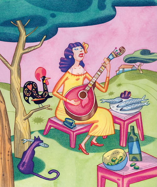 Ilustração para um evento cinematográfico cujo tema é Portugal. Portugal não é nada assim, mas a maior parte dos bretões não o sabem. Portanto, amigos portugueses, as minhas desculpas pelo cliché!