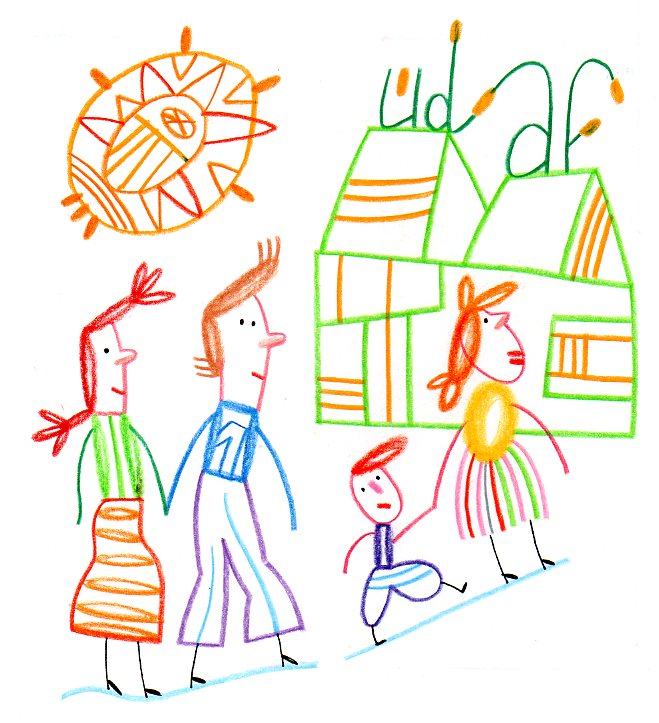 Made for a French family-centered organization, UDAF, these illustrations depict one child's trip home from school, and his positive and negative encounters along the way. Colors: Aimee Wang.