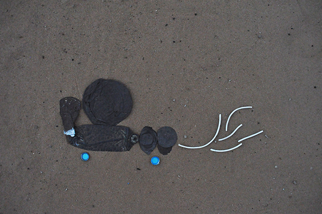 Accident dans un jardin sableux.